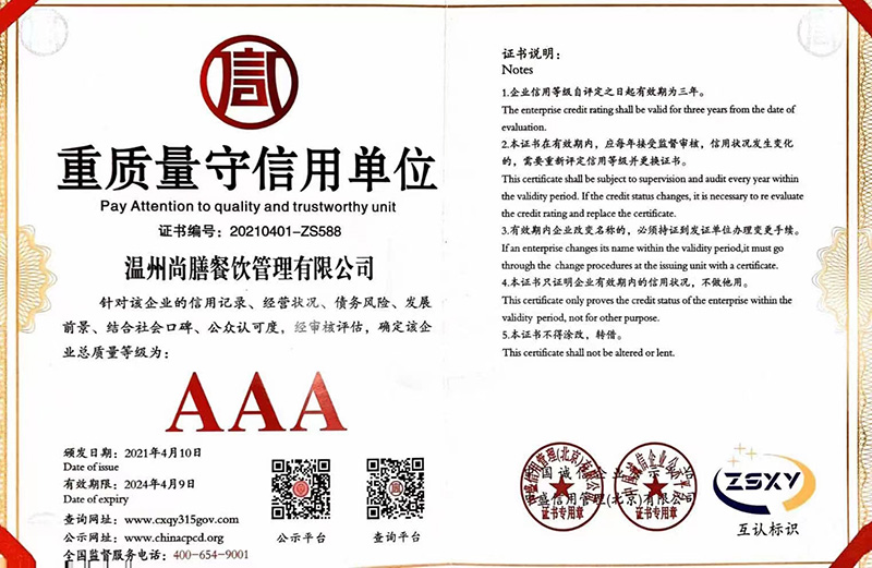首頁>企業資質 > 重質量守信用企業企業資質